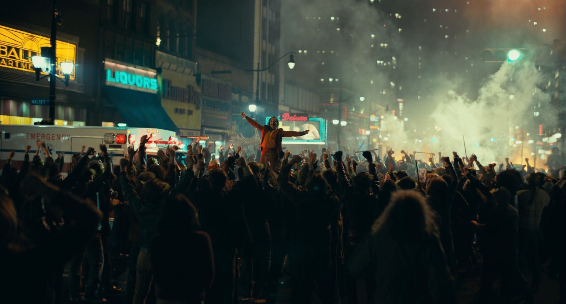En el otro extremo tenemos al Joker que, golpeado en lo más hondo de su identidad, emprende también el camino del sacrificio, pero el que le inflige a otros en una auténtica kermés siniestra. Gracias al poder de la televisión, su venganza se convierte, sin él buscarlo, en el detonante para convertirle en el líder de la anarquía, todo un rito sangriento consciente (o woke).