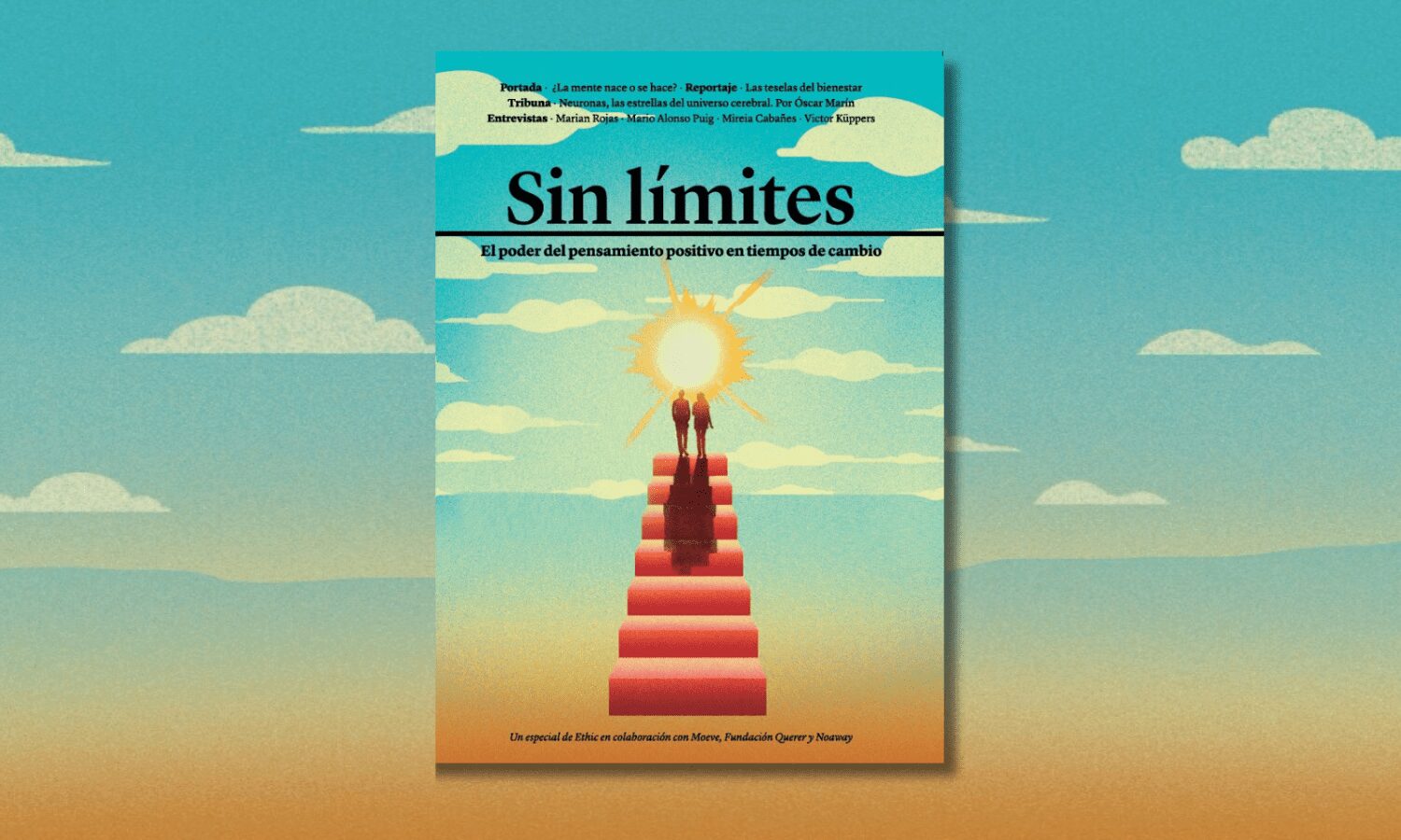 Ante el estupor, sosiego. Ante lo precario, luminosidad en el discurso, brío y coraje para razonar. Eso es lo que propone la publicación Sin límites: El poder del pensamiento positivo en tiempos de cambio, un proyecto de Ethic, Moeve, Fundación Querer y Noaway que se ha presentado en la sede de Moeve en Madrid. Editada en papel y en formato virtual, la revista reúne a diferentes expertos que proponen formas de pensar inspiradoras y estimulantes para encarar estos retos a los que nos enfrentamos tanto como individuos como sociedad. Sin caer en ingenuidades, analiza aspectos como las políticas educativas, la investigación científica, el acceso a la salud o la igualdad de oportunidades desde una perspectiva acrisolada, desde la música a la neurociencia.