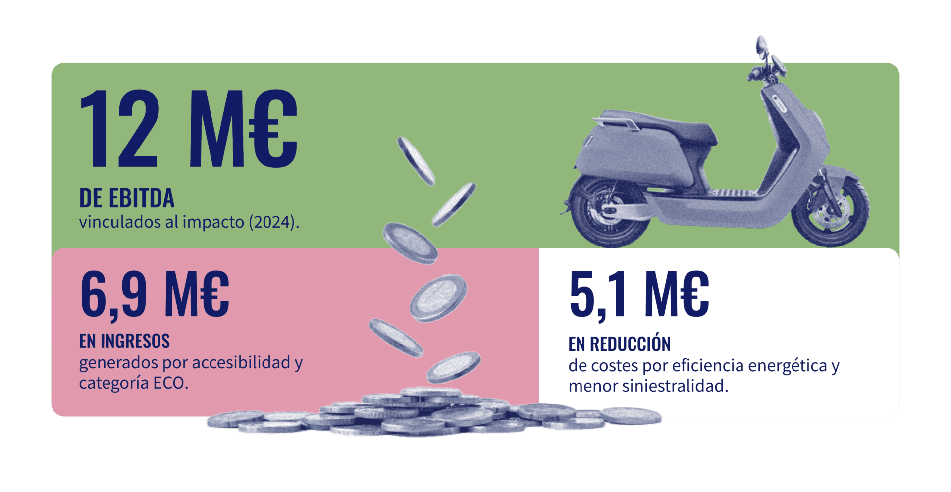 El análisis se realizó con datos del ejercicio 2024 y permitió estudiar más de veinticinco iniciativas de impacto desplegadas tanto en España como en América Latina. Los resultados muestran que la sostenibilidad es una palanca de creación de valor económico directo. Del total del EBITDA generado por la compañía ese año, 12 millones de euros —en torno al 40 % del total— están vinculados de manera directa a iniciativas de impacto. Traducido a la lógica empresarial: el impacto genera ventaja competitiva y retorno financiero real. Maite Gómez-Fraile lo describe como «un avión de dos motores: estamos hablando de cómo la sostenibilidad impulsa no solamente los ingresos, sino que también puede ser una palanca eficiente de reducción de costes».